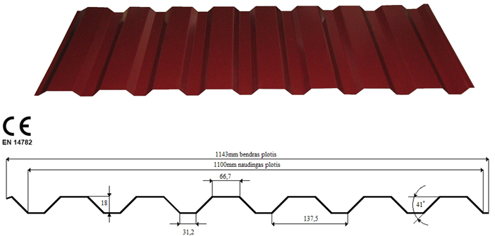 Profiliuota skarda tvoroms su dvipusiu padengimu. Paviršius padengtas poliesterine danga, tai suteikia papildomą apsaugą nuo UV spindulių ir korozijos.